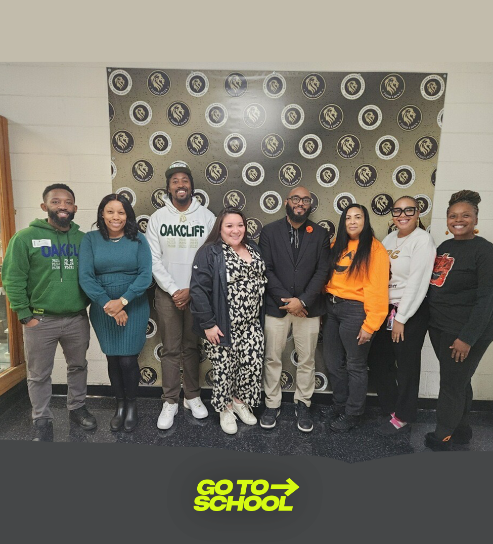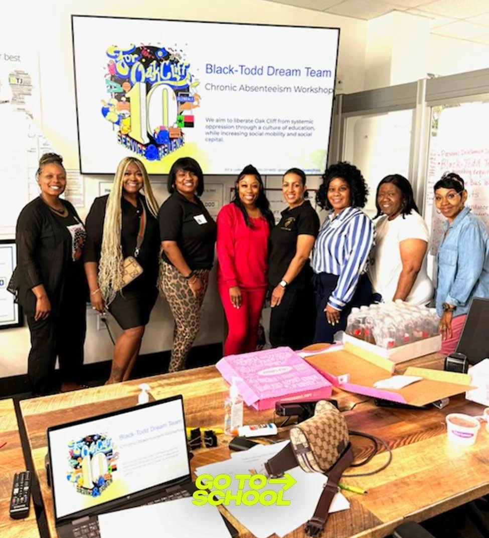 After celebrating a decade of innovation and empowering work in the South Oak Cliff community and beyond, For Oak Cliff engaged in a strategic visioning process with The William Julius Wilson Institute and Bridgespan to identify its goals for the next decade. Chief Executive Officer Taylor Toynes and Chief Strategy Officer Xavier Henderson analyzed the most impactful education issues in the area. After reviewing the data, it was evident that For Oak Cliff needed to make a serious imprint on decreasing chronic absenteeism. With neighborhood schools boasting chronic absenteeism rates of 49 percent, the For Oak Cliff team recognized its unique position. They begin to design a dynamic strategy to change the trajectory of chronic absenteeism in the 75216 zip code. For Oak Cliff chose to pilot its work at Black Elementary and Todd Middle Schools, because of their significant chronic absenteeism rates. For Oak Cliff’s Director of Cradle to Career Education, Shareefah Mason, curated the Black-Todd Dream Team, convening educators from both campuses to devise and execute the strategy. The Go To School Campaign was launched at For Oak Cliff’s annual Back to School Festival, in August 2025. In a short time, the campaign has garnered a lot of success, but For Oak Cliff’s work is not done. The goal of eradicating chronic absenteeism is clear, and we will not stop until it is achieved!